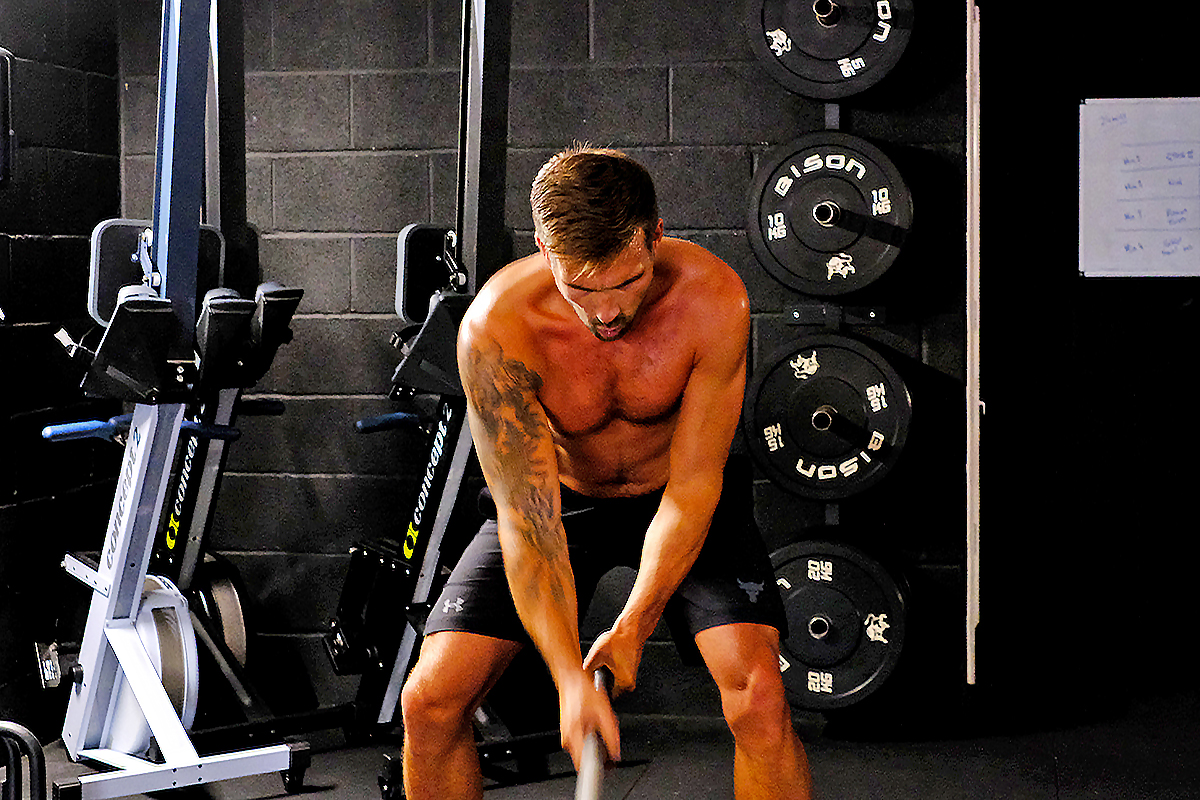 We arrive at Spartan Chamber – a functional training gym sitting within an industrial estate in Chelston – and are greeted by its owner, former Royal Marines commando Ryan Atkins. On a whiteboard inside the two-story facility he’s devised a short circuit which we’ll complete three times, comprised of weighted sled pushes and farmers walks, tyre sledgehammers and time on the ski erg, watt bike and battle ropes.